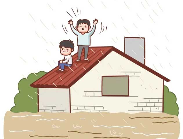 無論是孤身一人還是聚集人群突遭洪水圍困于基礎較牢固的高地或磚混結構的住宅樓房時,只要有序固守等待求援或等待陡漲陡落的洪水消退后即可解圍。如遭洪水圍困于低洼處的溪岸、土坯或木結構的住房里,情況危急時(泥石流另述),有通訊條件的,可利用通訊工具向當地政府和防汛部門報告洪水態勢和受困情況,尋求救援;無通訊條件的,可制造煙火或來回揮動顏色鮮艷的衣物或集體同聲呼救,不斷向外界發出緊急求助信號,求得盡早解救;同時要尋找體積較大的漂浮物,主動采取自救措施。